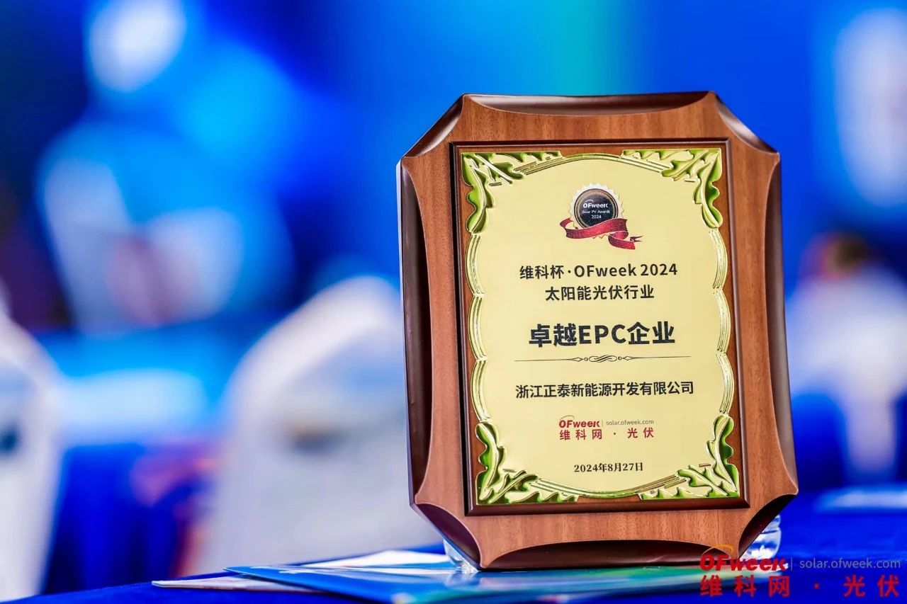 8月27日,由OFweek維科網及旗下權威的光伏專業媒體-維科網·光伏共同舉辦的“OFweek 2024(第十五屆)太陽能光伏產業大會暨行業年度評選頒獎典禮”在深圳成功舉辦。在同期舉辦的維科杯·OFweek 2024(第十屆)太陽能光伏行業年度評選頒獎典禮上,正泰新能源榮獲“2024太陽能光伏行業卓越EPC企業”獎。