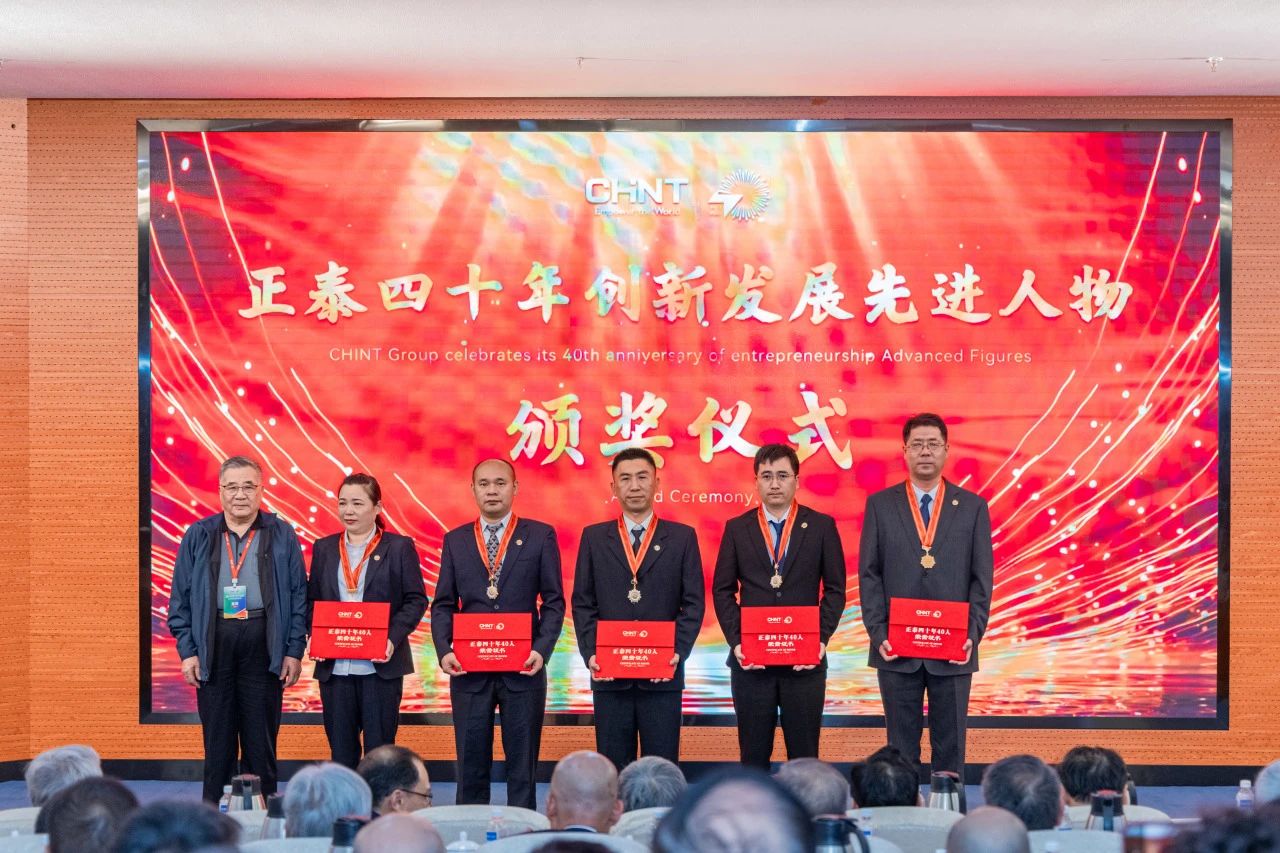 會上舉行了正泰四十年40人創新發展先進人物頒獎儀式,頒發了敬業擔當獎、銳意創新獎、工匠之光獎、奮進開拓獎、同舟共濟獎五大獎項。與此同時,60位正泰員工獲得“正泰星光獎”,15000余名司齡五年以上的正泰人收到公司特別定制的紀念證書。