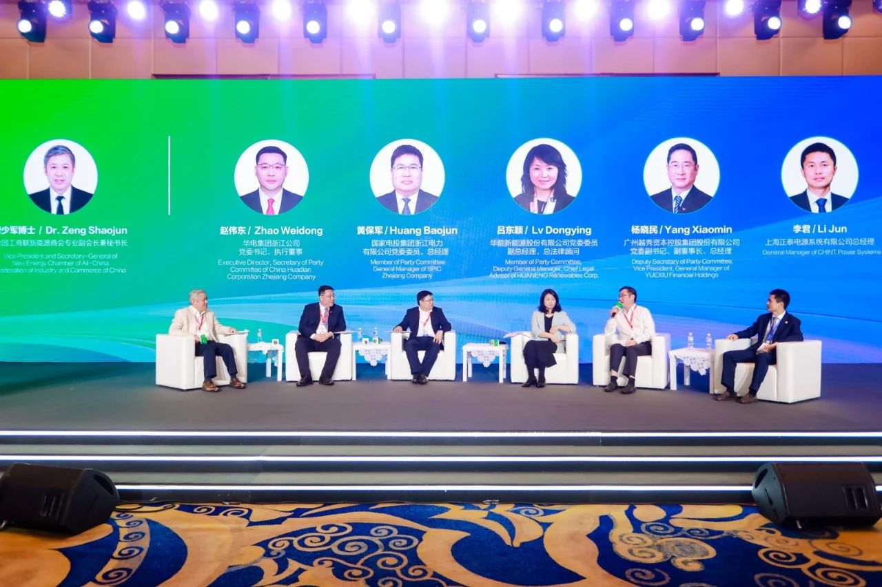 對于綠色能源的未來發展,企業在這一過程中扮演著至關重要的角色。會上,舉辦了以“綠色能源產業發展治本之策”為主題的圓桌對話。有來自中國華電集團有限公司浙江公司、國家電投集團浙江電力有限公司、華能新能源股份有限公司、廣州越秀資本控股集團股份有限公司以及上海正泰電源系統有限公司的嘉賓參與。對話由全國工商聯新能源商會專業副會長兼秘書長曾少軍博士主持。與會嘉賓表示,在新能源的產業發展中,國企和民企需相互扶持,這在能源轉型發展中必不可少。希望企業間能繼續加強合作,助力新能源產業真正走出去。