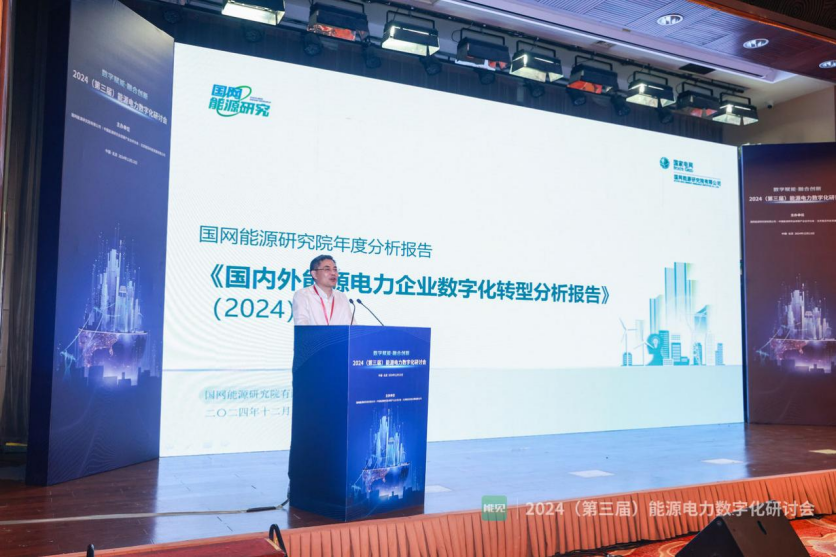 在大會(huì)的“報(bào)告發(fā)布”環(huán)節(jié),國網(wǎng)能源研究院有限公司發(fā)布了《2024年國內(nèi)外能源電力企業(yè)數(shù)字化轉(zhuǎn)型分析報(bào)告》。本年度報(bào)告結(jié)合國家能源局等主管部門的意見和導(dǎo)向,重點(diǎn)分析了能源電力企業(yè)在數(shù)字化管理體系、數(shù)字技術(shù)創(chuàng)新應(yīng)用、生產(chǎn)經(jīng)營轉(zhuǎn)型升級(jí)、數(shù)據(jù)要素價(jià)值挖掘四個(gè)方面的重點(diǎn)舉措,從而進(jìn)一步助力新型電力系統(tǒng)的建設(shè)與數(shù)字基礎(chǔ)深度融合,更好的支撐數(shù)字經(jīng)濟(jì)高質(zhì)量發(fā)展。報(bào)告聚焦典型,數(shù)據(jù)詳實(shí),評(píng)估深入,緊跟實(shí)證,從能源電力企業(yè)數(shù)字化轉(zhuǎn)型發(fā)展趨勢(shì)、能源電力企業(yè)數(shù)字化轉(zhuǎn)型的問題和挑戰(zhàn)、能源電力企業(yè)數(shù)字化轉(zhuǎn)型進(jìn)展與特點(diǎn)、能源電力企業(yè)數(shù)字化轉(zhuǎn)型成熟度評(píng)估四個(gè)方面進(jìn)行分析,并列舉了國內(nèi)外著名能源電力企業(yè)的數(shù)字化智能化發(fā)展案例,重點(diǎn)給出了企業(yè)在電力算力融合、數(shù)據(jù)資產(chǎn)化、人工智能應(yīng)用方面的實(shí)施策略。