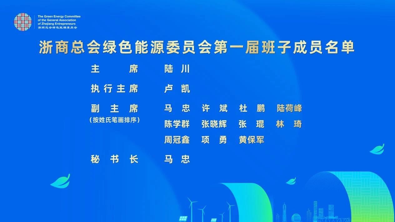 授牌儀式 浙江省工商聯黨組成員、秘書長,浙商總會黨委書記、副會長、秘書長宋立;浙商總會綠色能源委員會主席陸川為委員會第一屆班子成員授牌。