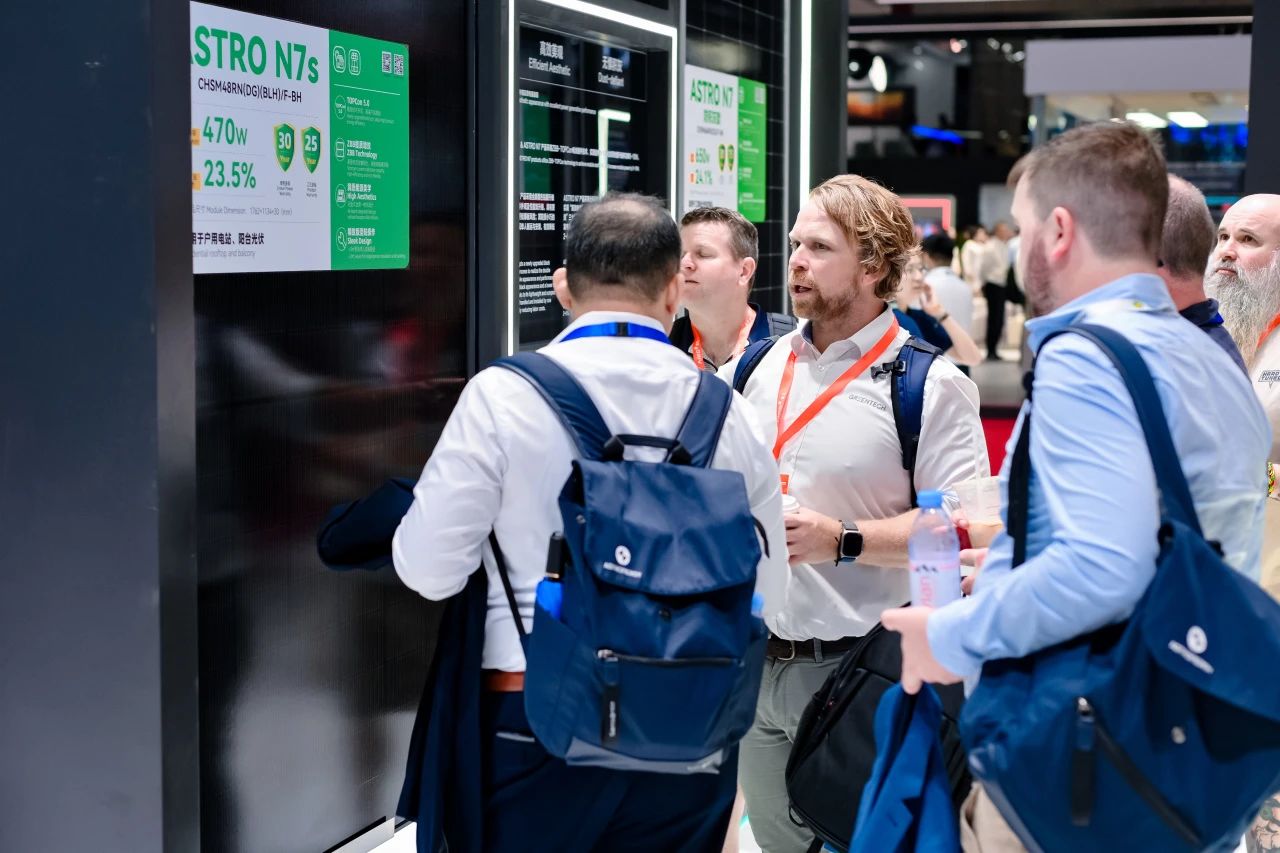 工作人員介紹,ASTRO N7是公司多場景應用的標桿產品,憑借210R矩形硅片與TOPCon 5.0電池技術的融合,最高效率達24.1%。尺寸設計、低開壓設計等多維度創新,有效降低了產品運輸成本,同時提升組串功率,最終降低BOS成本及LCOE。