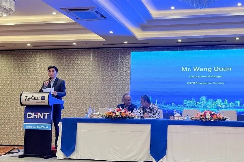 正泰新能源戰略發展中心、正泰智維副總經理王荃向與會嘉賓致歡迎辭。在致辭中,他感謝孟加拉社會各界對正泰新能源產業在孟加拉發展提供的支持與關注;同時,向與會嘉賓釋放正泰智維將正式進軍當地運維市場的發展計劃。未來,正泰將為當地的各類光伏電站提供全方位、一站式運維服務。