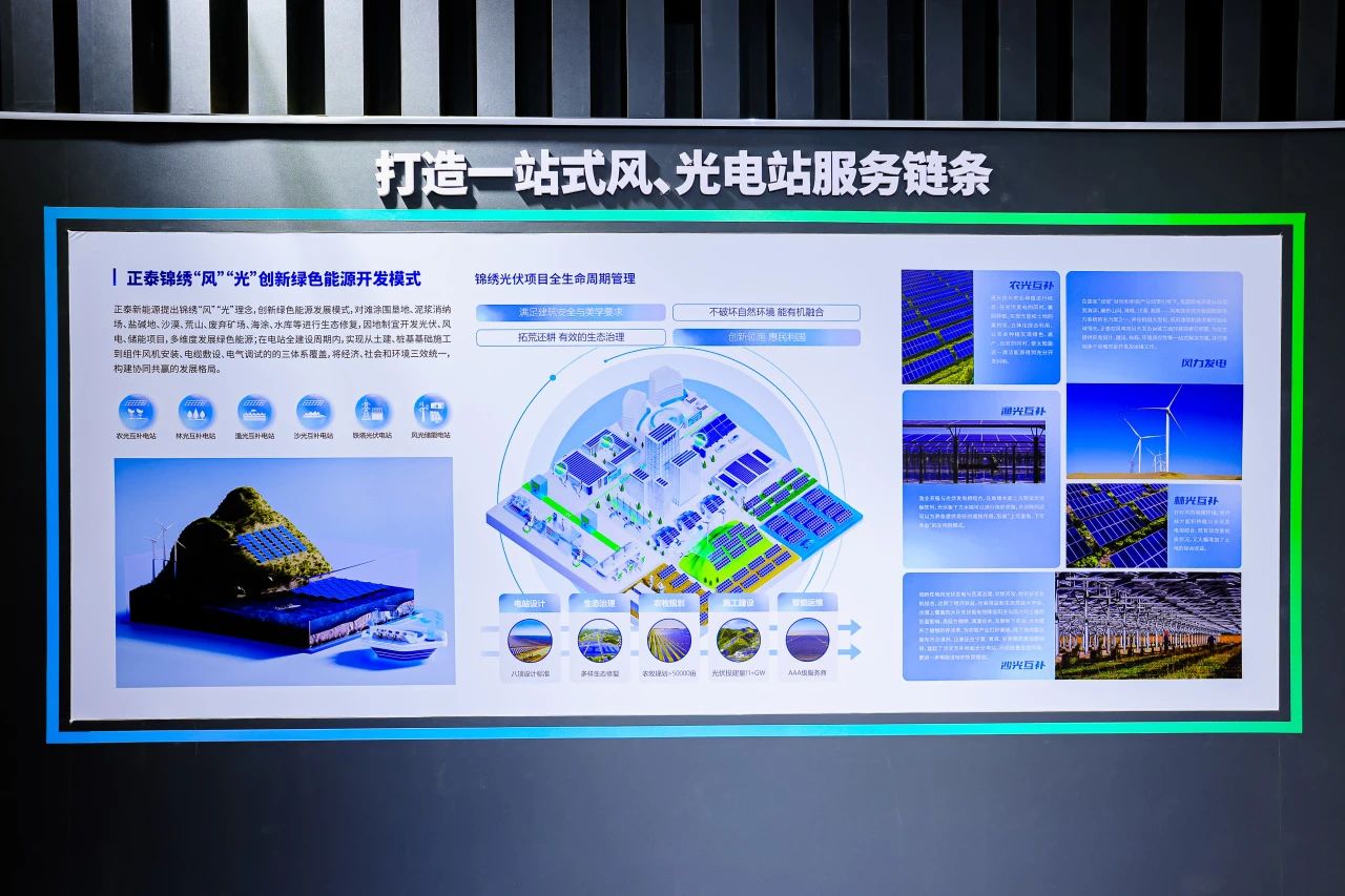 正泰新能源提出錦繡“風”“光”理念,創新綠色能源發展模式,對灘涂圍墾地、泥漿消納場、鹽堿地、沙漠、荒山、廢棄礦場、海涂、水庫等進行生態修復,因地制宜開發光伏、風電、儲能項目,多維度發展綠色能源;在電站全建設周期內,實現從土建、樁基基礎施工到組件風機安裝、電纜敷設、電氣調試的三體系覆蓋,將經濟、社會和環境三效統一,構建協同共贏的發展格局。