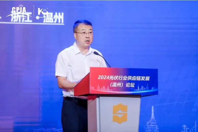 溫州市人民政府副市長王振勇出席會議并致辭。王振勇表示,近年來,溫州“追光逐日”,依托正泰等光伏龍頭企業(yè),加快推進(jìn)產(chǎn)業(yè)鏈、創(chuàng)新鏈、供應(yīng)鏈、資金鏈、人才鏈等協(xié)同融合發(fā)展,積極打造國際領(lǐng)先的智能光伏產(chǎn)業(yè)高地。溫州將以此次會議為契機(jī),進(jìn)一步加強(qiáng)與光伏協(xié)會在內(nèi)的各行業(yè)商協(xié)會、廣大企業(yè)深度合作,共謀發(fā)展、共話未來,熱切期待各位專家、企業(yè)家進(jìn)一步關(guān)注溫州、走進(jìn)溫州、投資溫州。